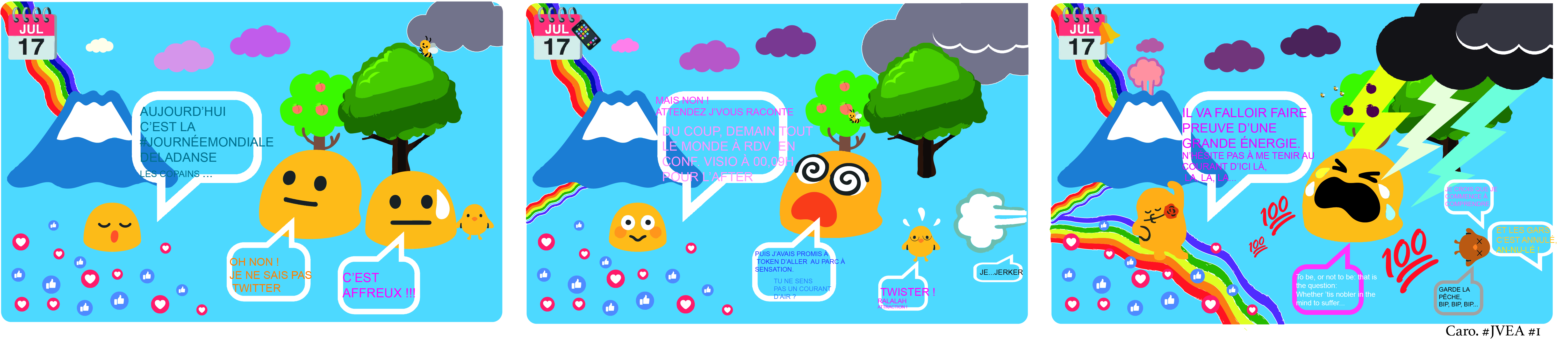 30/04/19 : Début de la BD de l’asso. d’acabit humoristique ! 👆👆👆👆👆Je (Caroline Albrus) fais don de mes comics strips à l’asso. si tant est qu’ils soient considérés comme exclusifs par Unicode. Le but est via ce lexique d’éléments de l’univers blob de Google et Unicode – que chacun puisse raconter des petites saynètes (comics strips) et à terme – de faire un livre numérique ou papier pour l’asso..